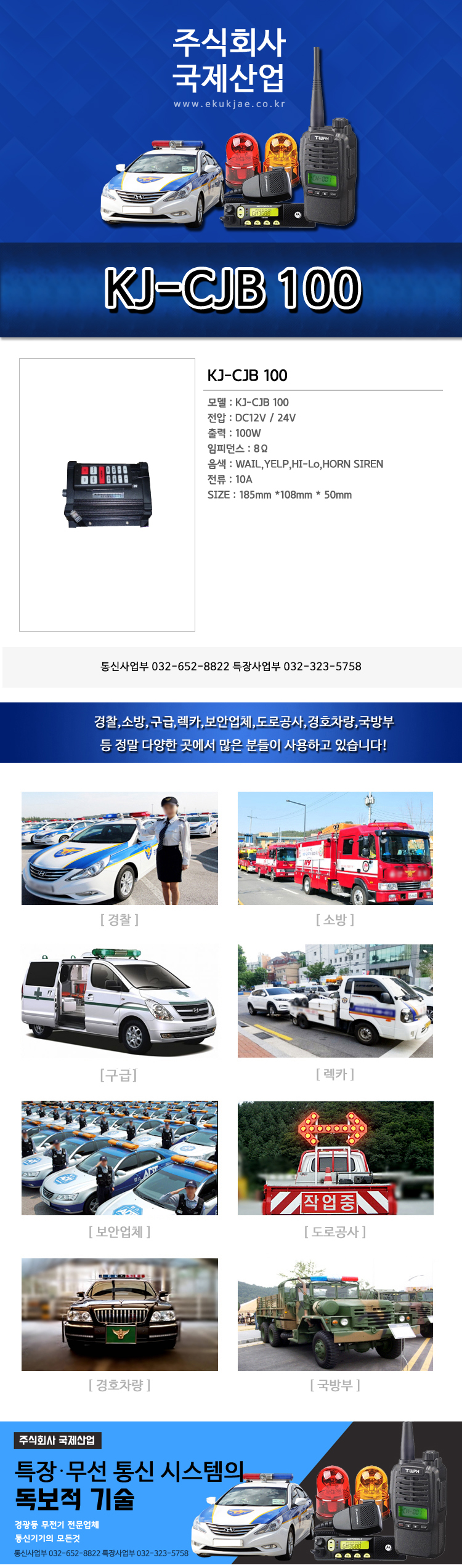 KJ-CJB 100 서울,구리,남양주,하남,고양,의정부,양주,포천,동두천,김포,광명,인천,시흥,안산,의왕,성남,광주,수원,화성,용인,오산,평택,양평,이천,여주,원주,횡성,홍천,가평,춘천,화천,양구,인제,강원도,경기도,강릉,양양,평창,정선,영월,제천,고성,속초,강릉,동해,삼척,태백,단양,봉화,울진,영양,영주,예천,천안,진천,음성,충주,괴산,청주,아산,당진,태안,서산,보령,공주,세종,대전,계롱,논산,금삭,영동,서천,상주,문경,구미,김천,의성,안동,영광,고창,나주,목포,해남,여수,순천,통영,진주,창원,김해,부산,울산,경주,포항,대구,달성,LED,경광등,싸인보드,앰프스피커,특장,고소작업대,써치라이트,무전기,무선중계기,비상등,국제산업,주식회사국제산업,전광판,싸이렌앰프,안테나,멀티충전기,무전기충전기,무전기악세사리,무전기마이크,미니경광등,특수경광등,경찰경광등,경찰싸인보드,소방,국방,병원,경호,산악,등산,행사,쏠라경광등,태양열경광등.도로경광등.작업등,탐조등,유리부착경광등.리프트경광등,모토로라무전기
